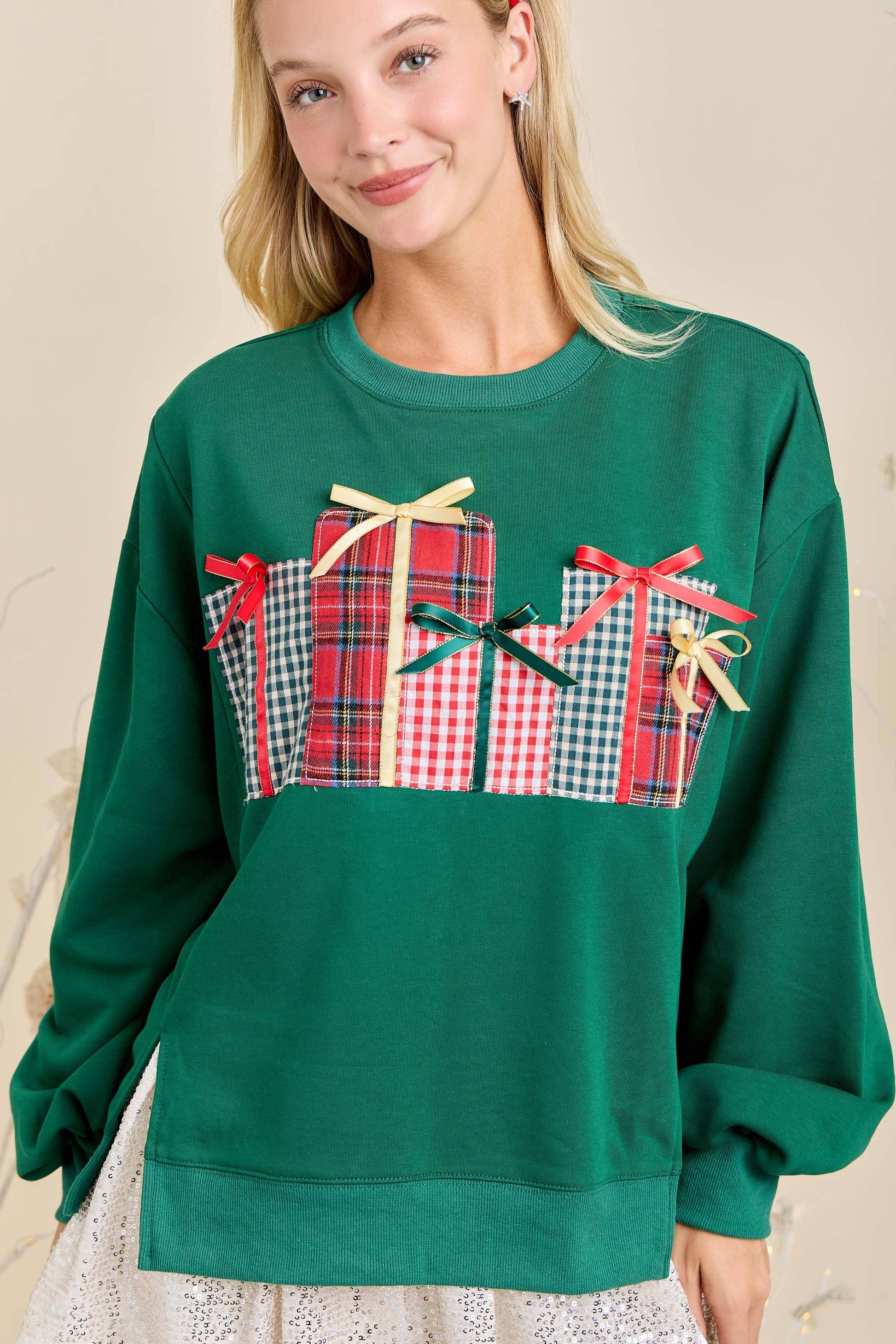 Christmas Sweatshirt Featuring Patchwork Gift box