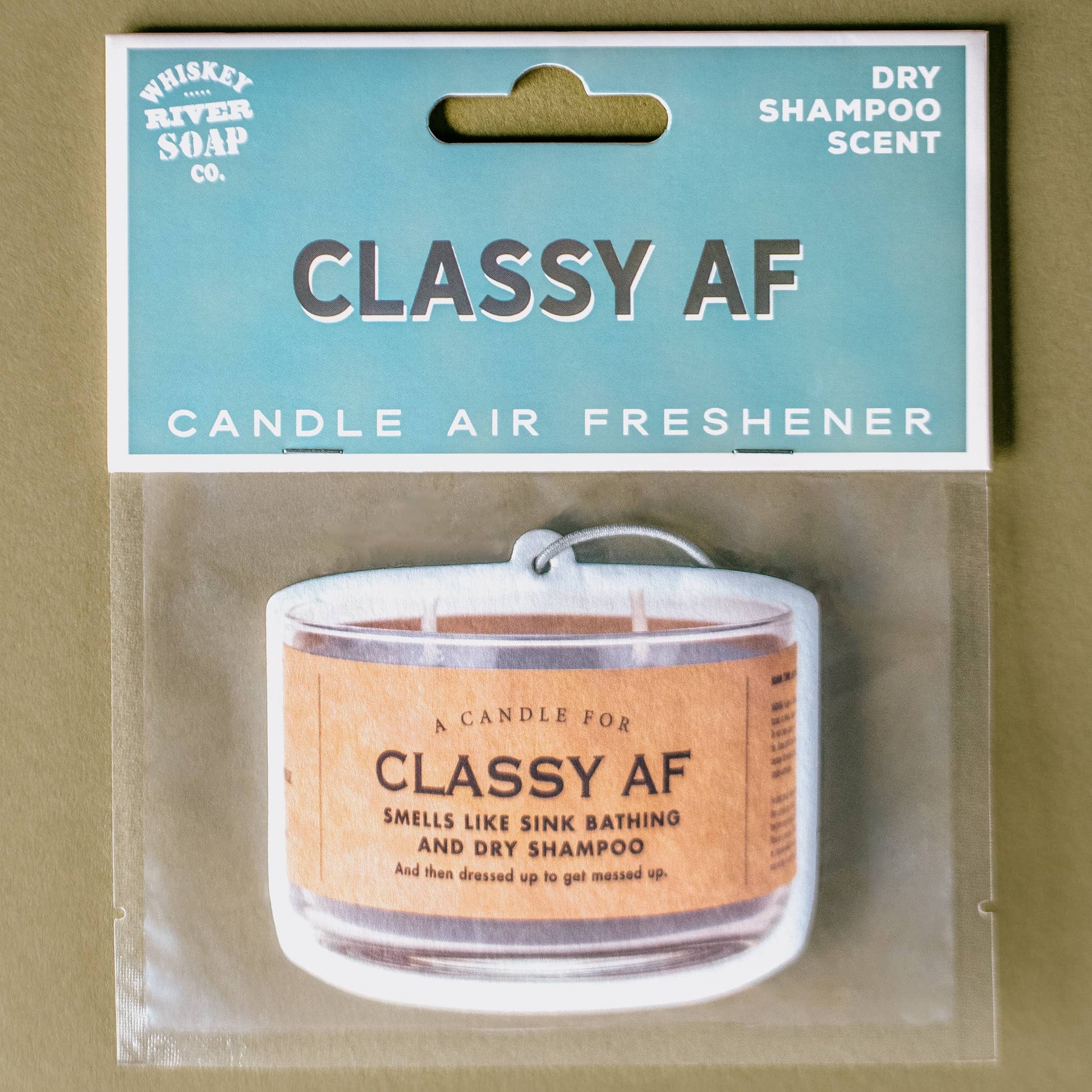 Keep your ride smelling fresh with this hilarious air freshener that proves you've got style and humor in spades. Featuring a cheeky "Classy AF" design, this double-sided freshener delivers dry shampoo scent wherever you go—because looking good means smelling good too. The vibrant full-color print makes a statement on your dashboard, while the included nylon hanging cord keeps it secure. A witty way to banish car odors and show off your personality at the same time.