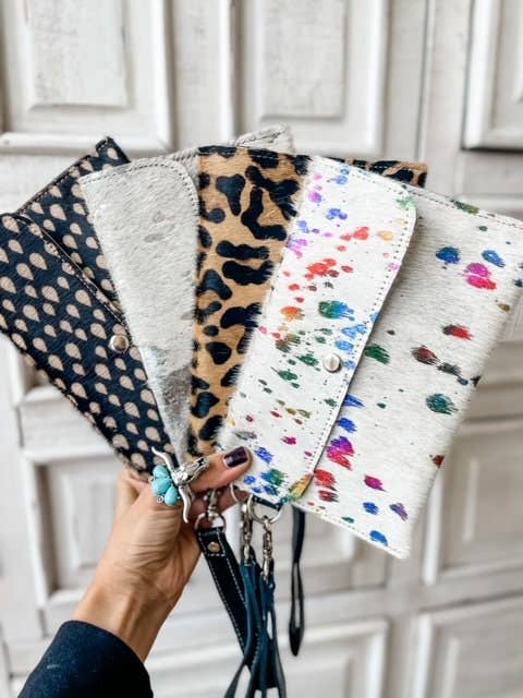 Cowhide Wristlet Wallet Western Genuine Hair On Fur Cowhide Envelope Wristlet Clutch Wallet | Exotic Animal Print Purse Handbag | Gift Idea