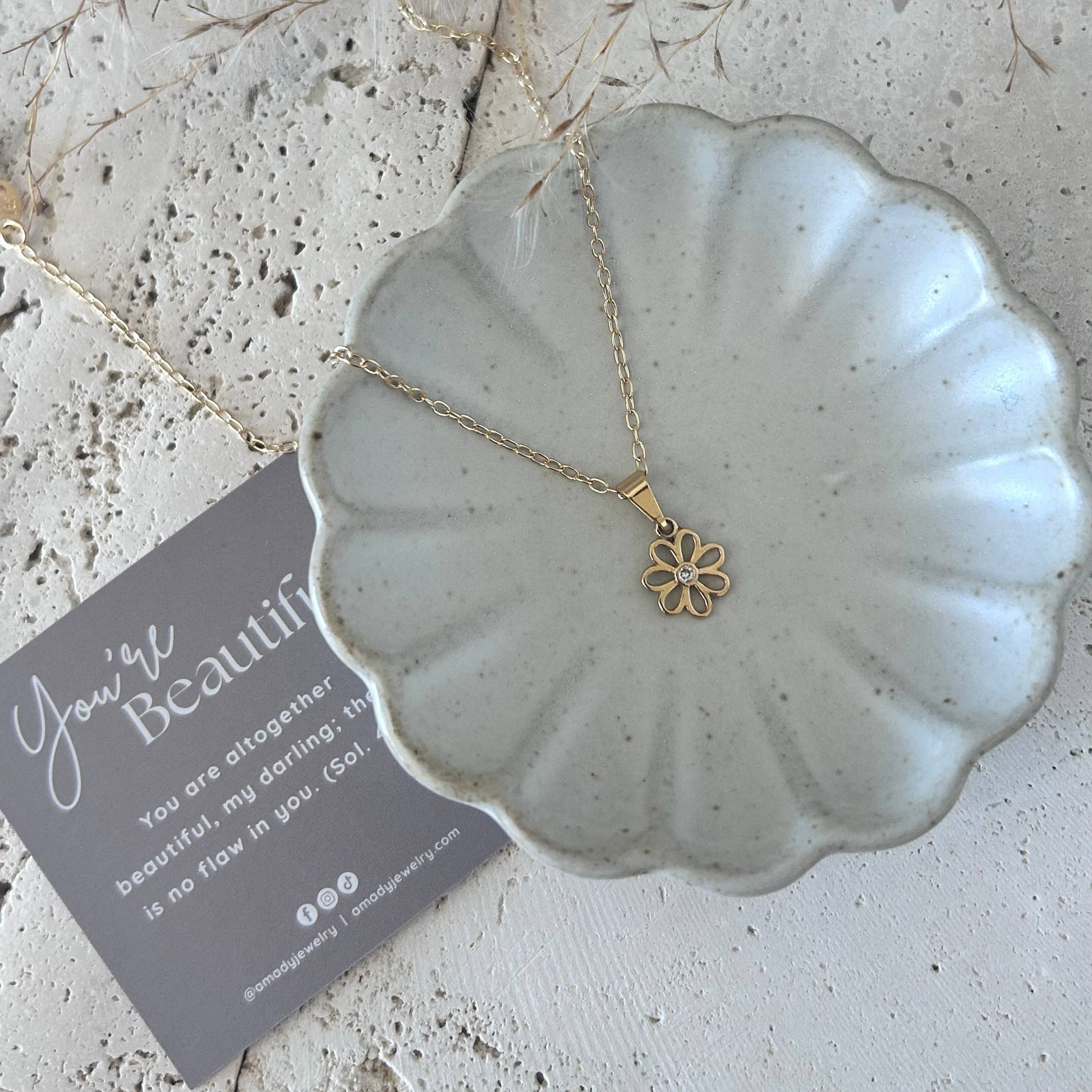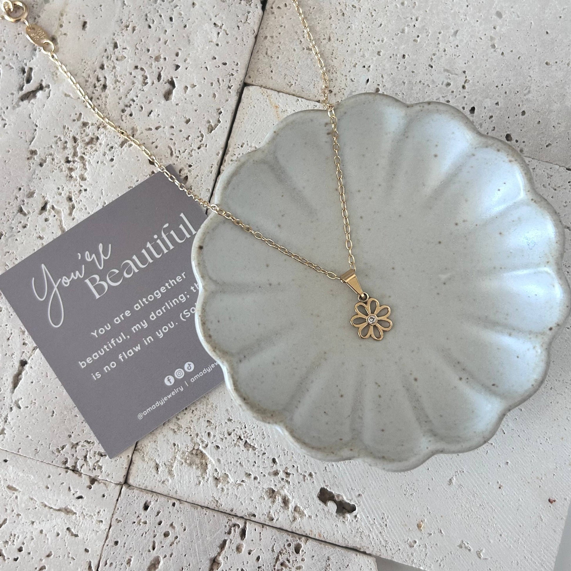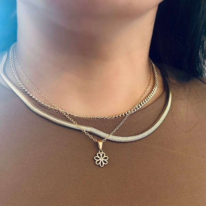 Flower charm pendant chain necklace 18k gold-filled daisy