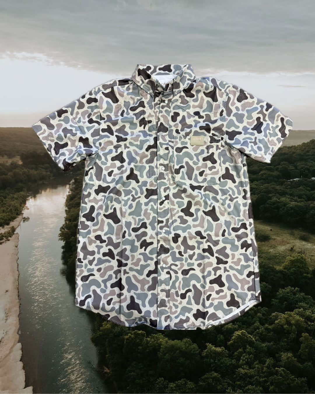Rock that vintage vibes with this pearl snap button-down featuring Grandpa's Classic Reel Rodeo camo pattern. Stash your essentials in the sneaky hidden zipper pocket, while the front left chest RRO pocket label and inside Faith & Freedom label keep it authentic. Perfect for anyone who appreciates timeless style with a modern twist.