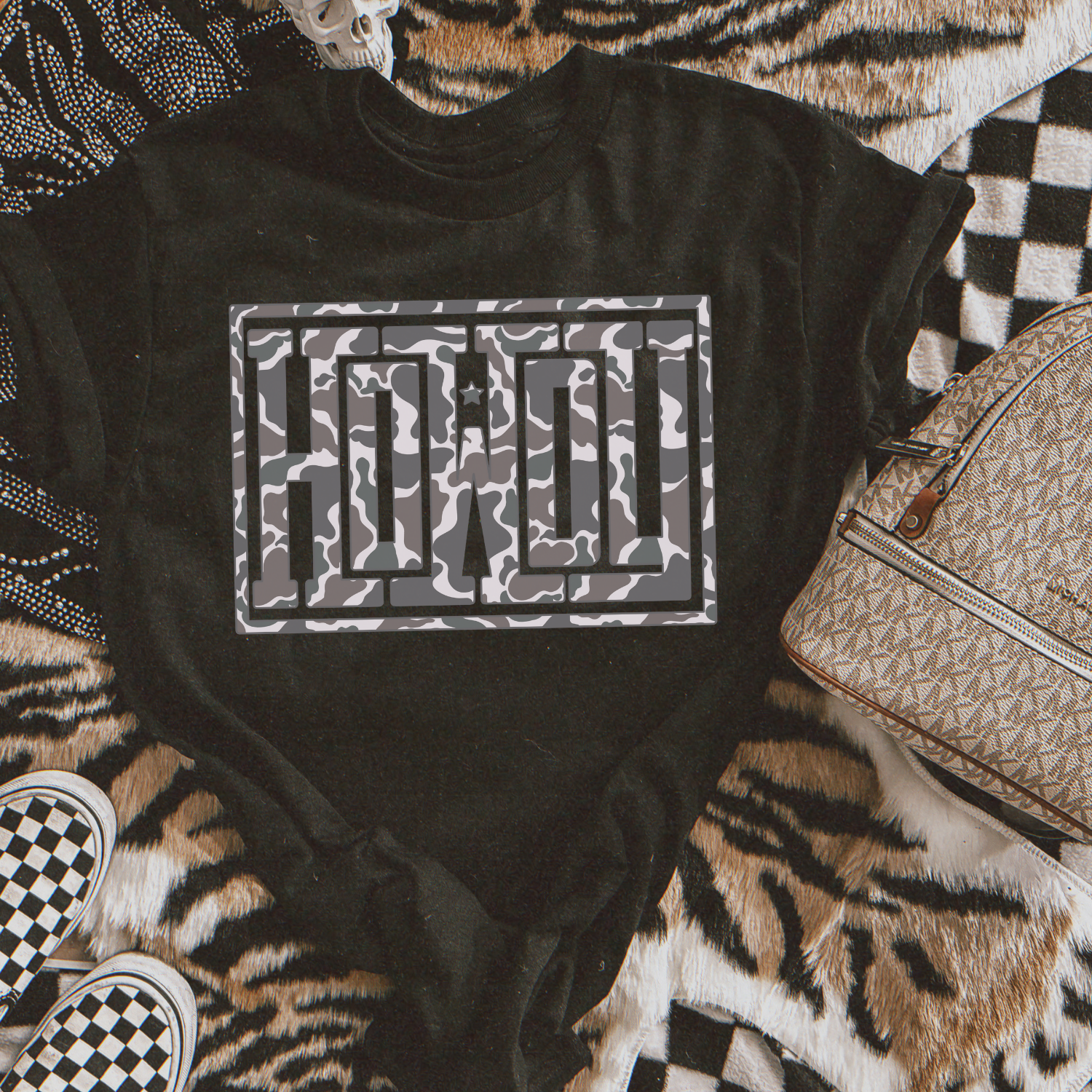 Stand out with the Howdy Duck Camo Tee, blending rugged camo style with a playful duck-themed design. Crafted for comfort and durability, this tee is perfect for outdoor adventures or casual wear. Its breathable fabric keeps you comfortable all day, while the unique pattern adds a bold, distinctive touch. Make a statement wherever you go with the Howdy Duck Camo Tee.