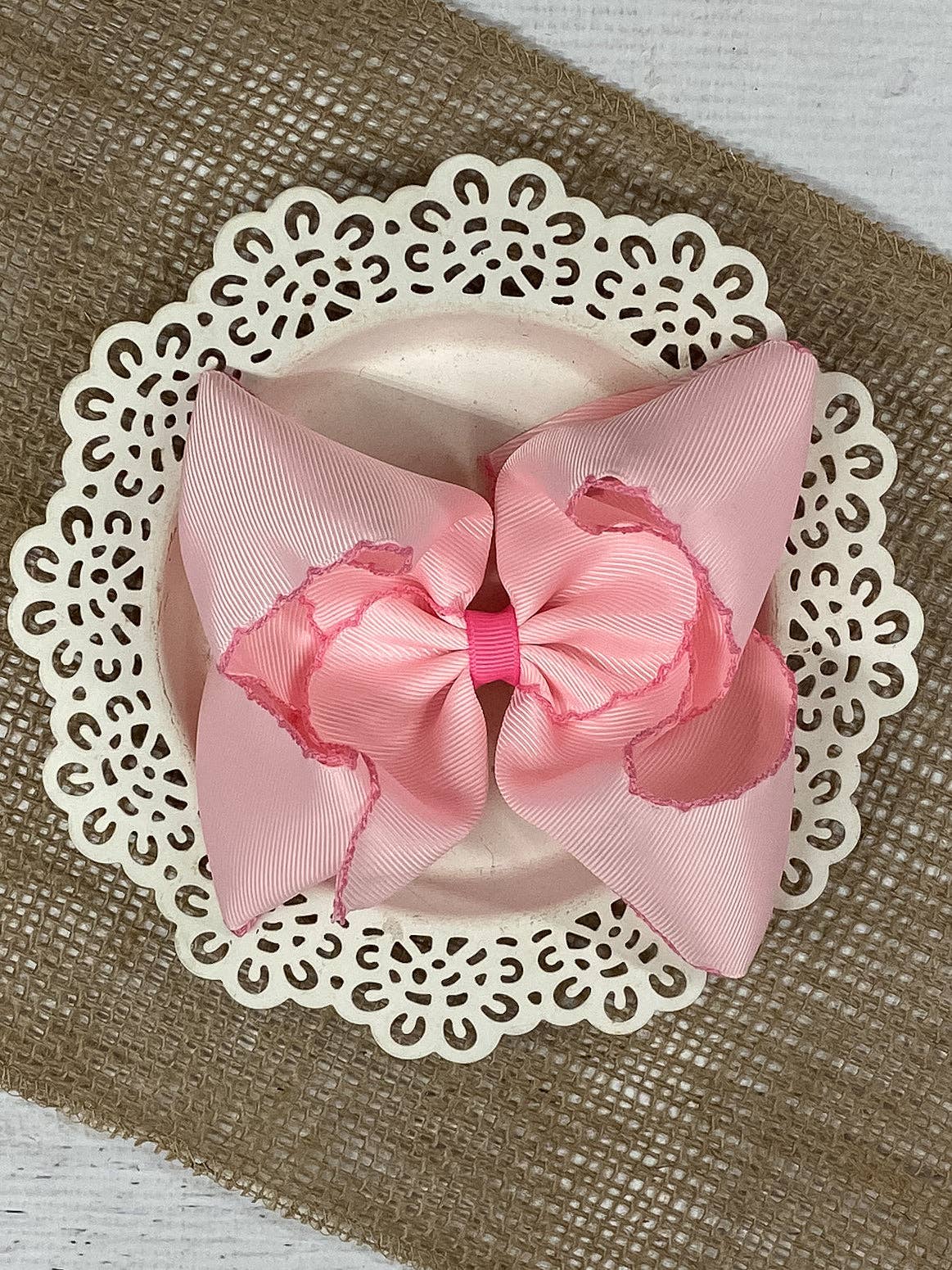 Light Pink with Pink Moonstitch Hair Bow