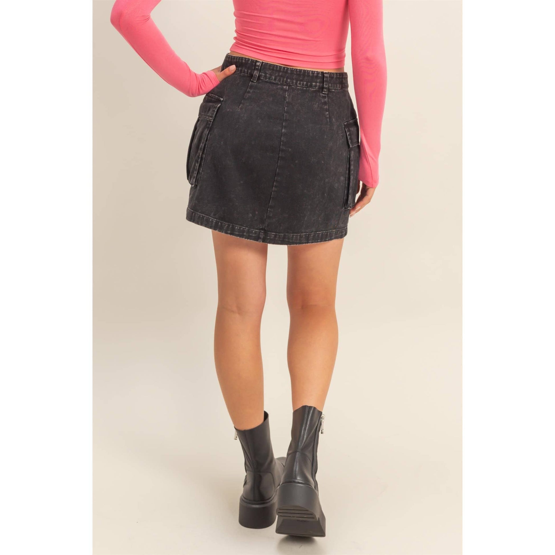 Mineral Washed Cargo Mini Skirt