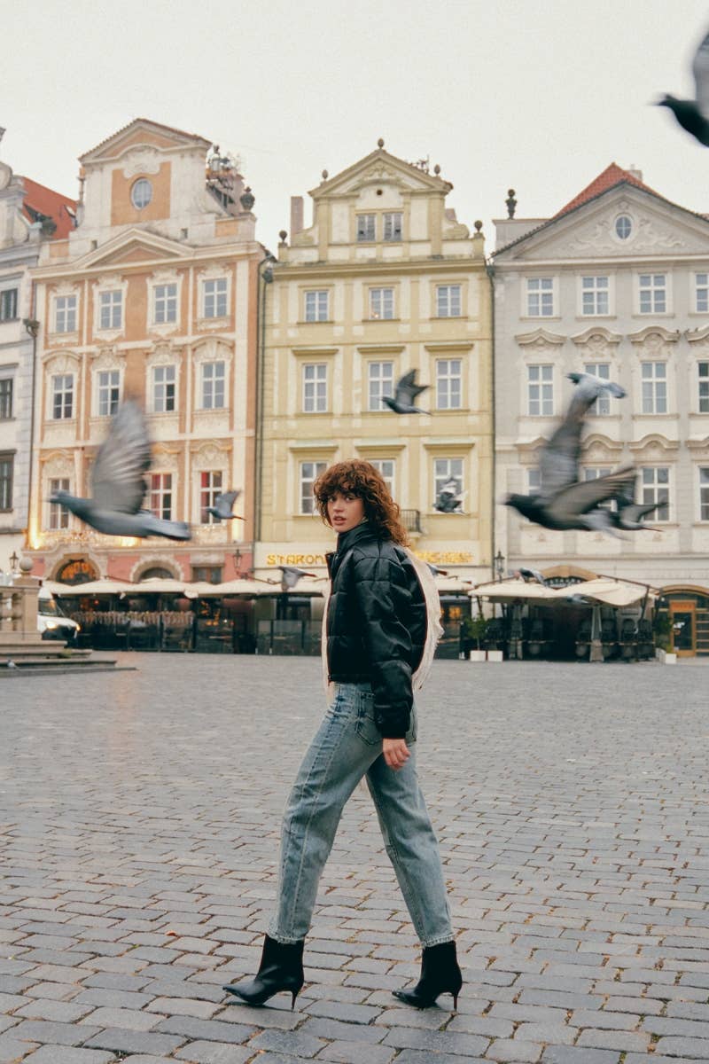 HIGH RISE SLIM BARREL FIT JEANS MEDIUM WASH COMFORT STRETCH ZIPPER FLY 5 POCKET STYLE SIDE CUT SEAMS DARTS DETAIL AT KNEE, BOTTOM, AND BACK VINTAGE MUD AND BLUE WASH NO DISTRESS RISE 11 1/2" INSEAM 27" IN SIZE 5/26 84% COTTON, 15% LYOCELL, 1% SPANDEX 11.75 OZ