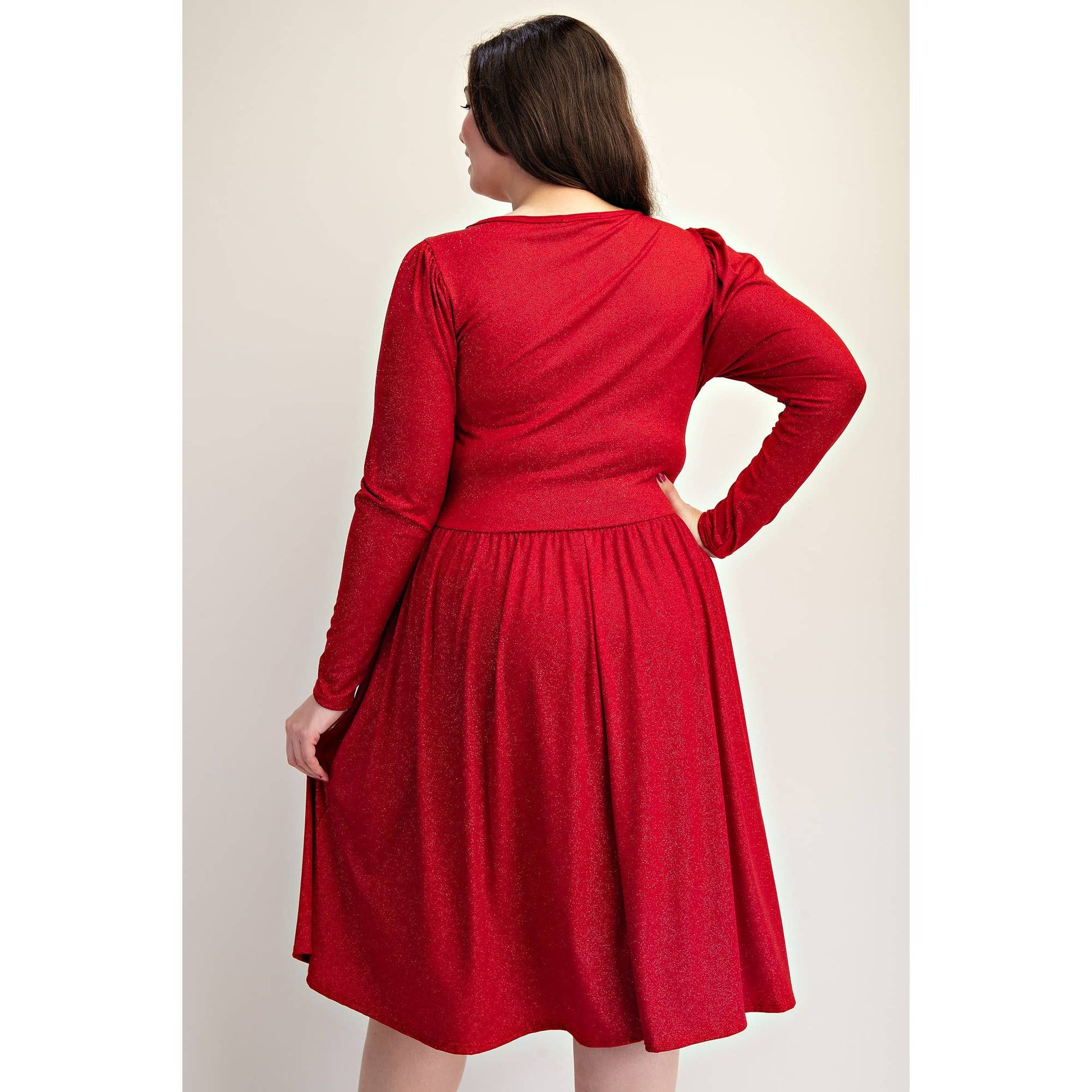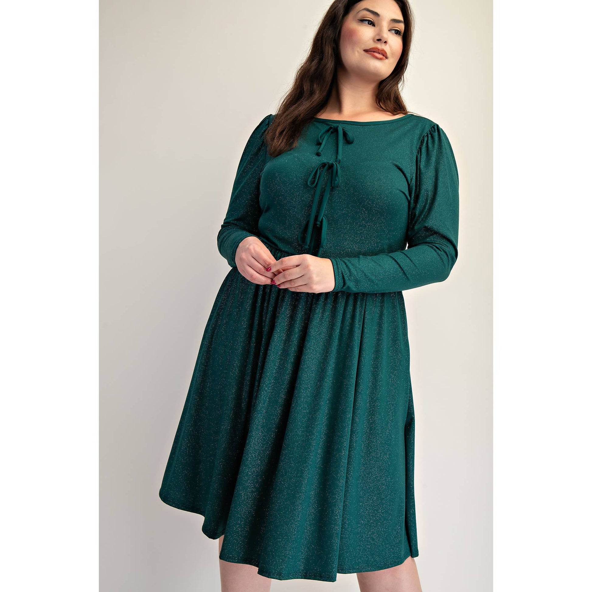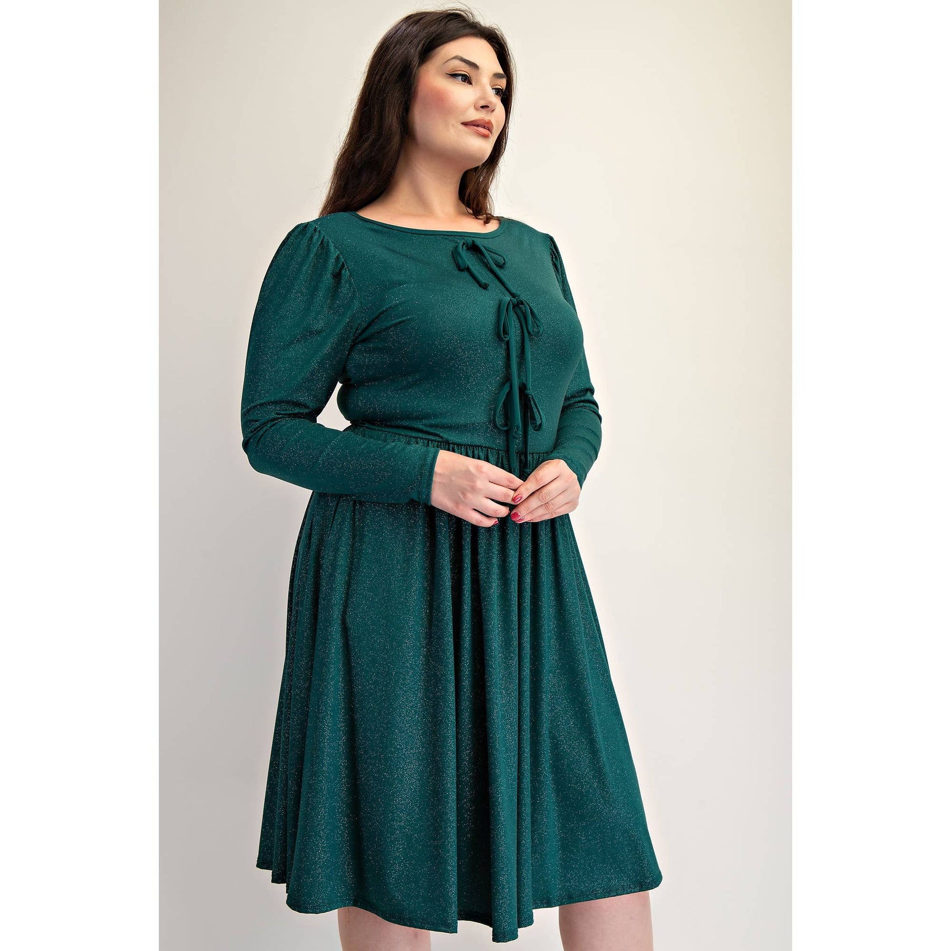 PLUS SIZE GLITTER KNIT FLARE DRESS WITH BOW DETAILS