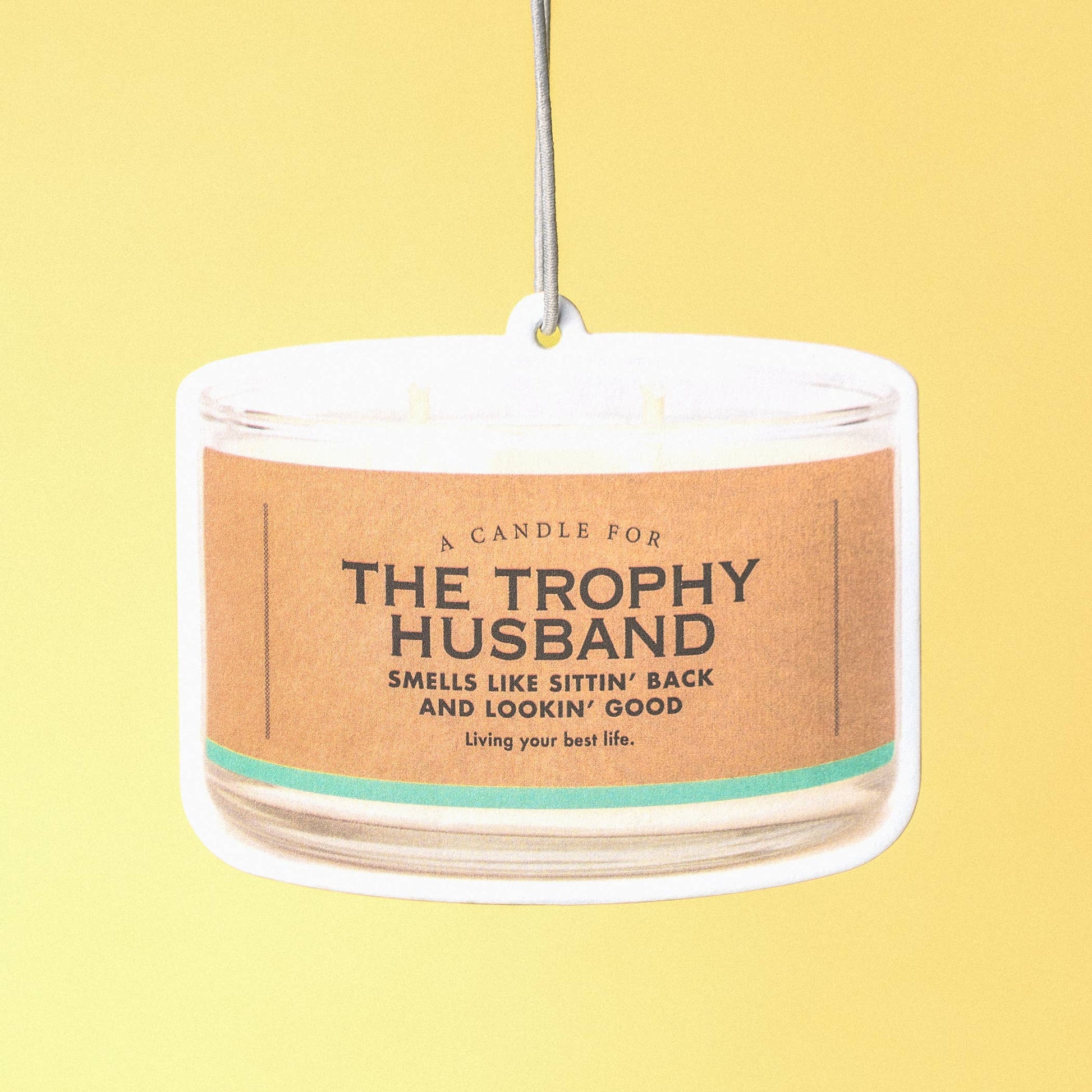 Keep your car smelling fresh with this hilarious Trophy Husband air freshener. Featuring a cheeky design and Tricked-Out Porsche scent, this double-sided full-color freshener brings humor to your daily commute. Measuring 3½" x 3" with a convenient nylon hanging cord, it's the perfect gag gift for anyone who needs a laugh—and a little fragrance boost. Because let's face it, everyone could use a confidence boost now and then.